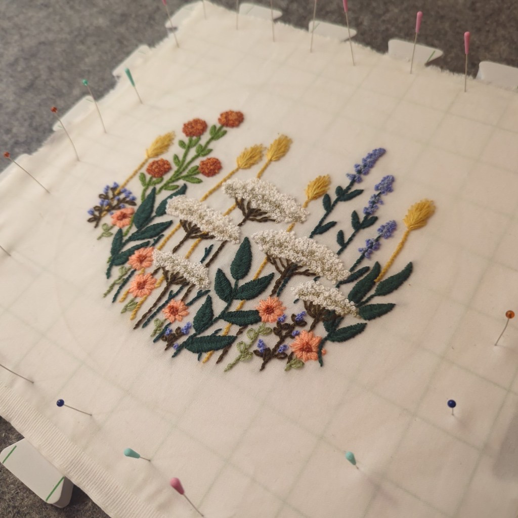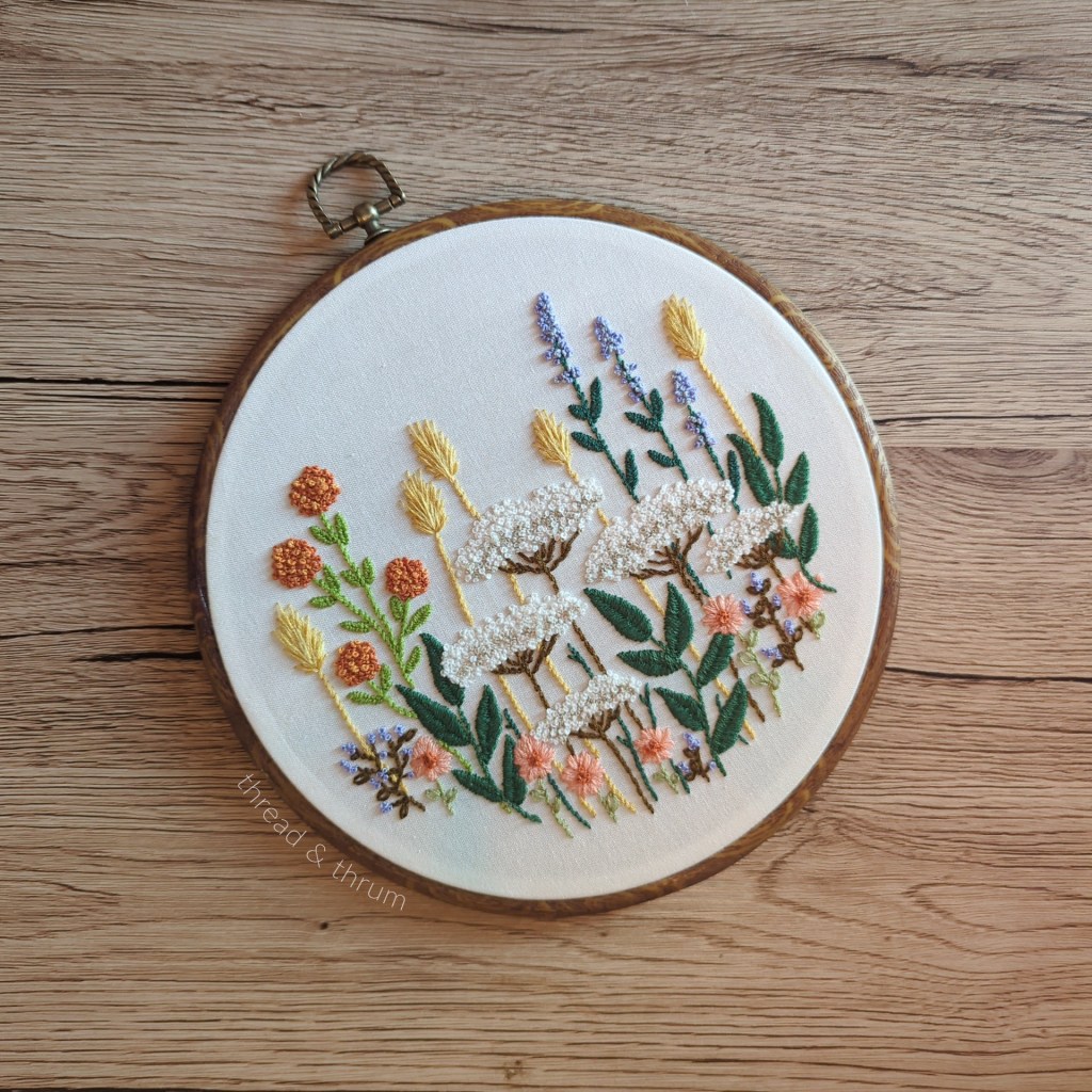 Conclusions: This embroidery makes me smile every time I see it hanging in my kitchen! I love the colors and the the overall flow of the plants. It’s a lovely piece :).