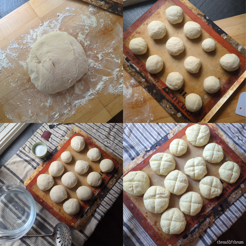 Shape those pieces into balls, placing them on your baking pan seam side down.