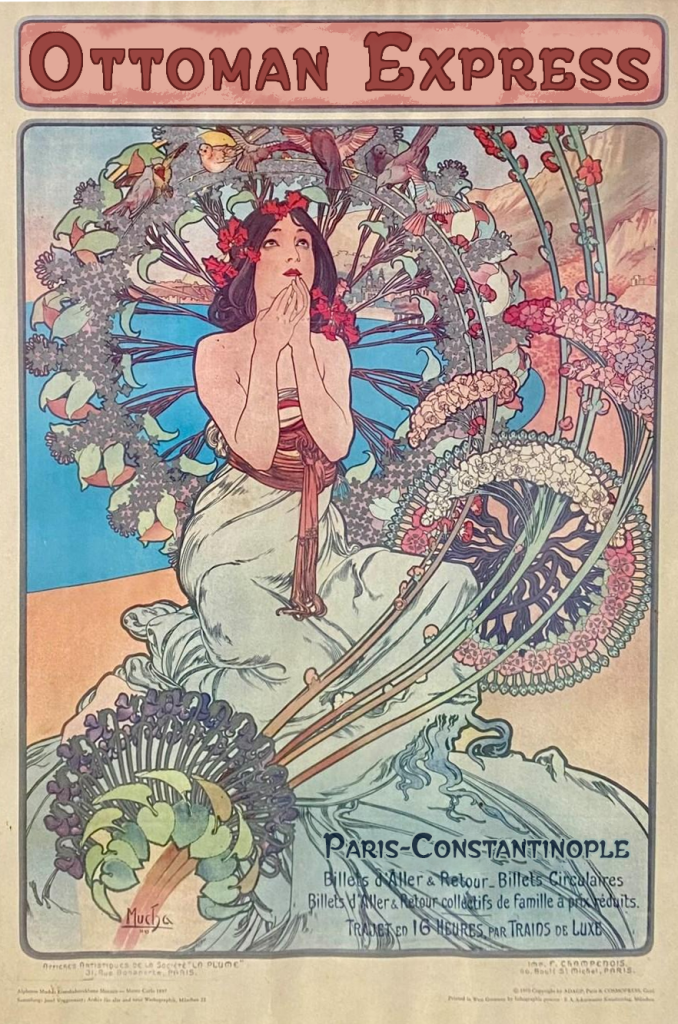 Ottoman Express Poster – I reworked this Alphonse Mucha poster for PLM Railway Services to read Ottoman Express and Paris-Constantinople. You’ll need to grab the PSD file to edit it (font used: Alphonse Mucha).