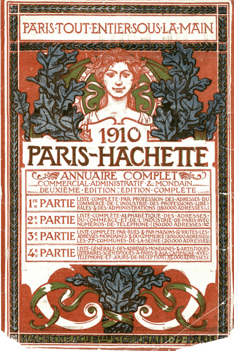 Paris Directory – Print booklet style. I printed it on cream colored paper. These are some pages excerpted from the 1910 edition of the MASSIVE real Paris Directory of the era.