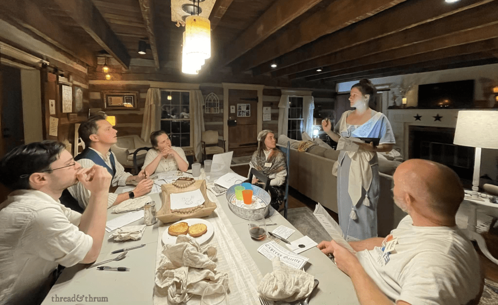 We played our murder mystery game as part of an overnight trip for my book club, and it was important to me that everything felt laidback and easy. As such, we didn’t start the game until much later than the suggested timetable. I didn’t keep an eye on the clock, and ended up making the final 10 minutes announcement at random based on the rhythm of the game, and completely forgot to make the “hour to go” announcement!